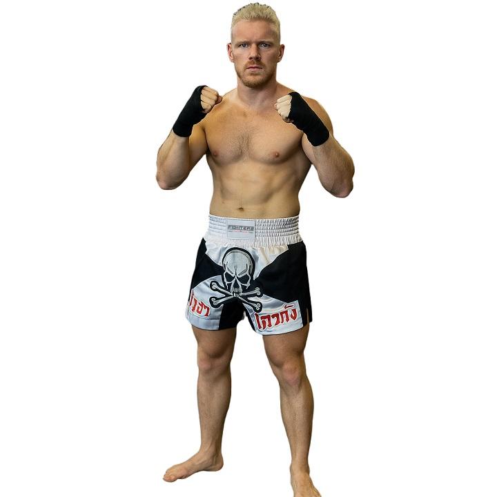 FIGHTERS Thai Shorts Skull White-Black – Pour les combattants qui veulent se démarquer.